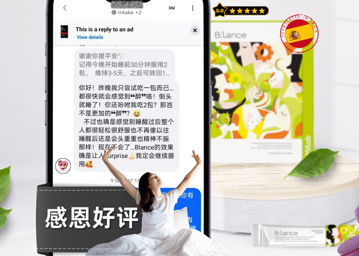 "I used to stay up late, rely on coffee to stay awake, and still couldn’t fall asleep at night. Mornings were always a struggle. Then I started taking B:lance every night at 11:30 pm, and my sleep cycle became stable. Now I fall asleep quickly and sometimes even doze off before charging my phone, haha!"